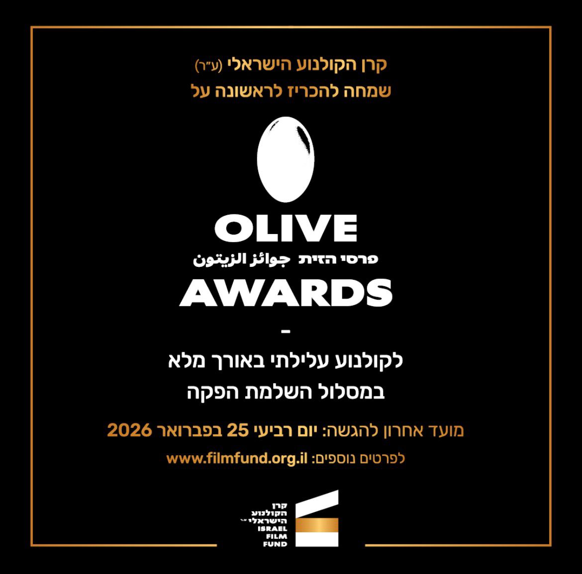 הגשת בקשות לפרסי הזית – קרן הקולנוע הישראלי